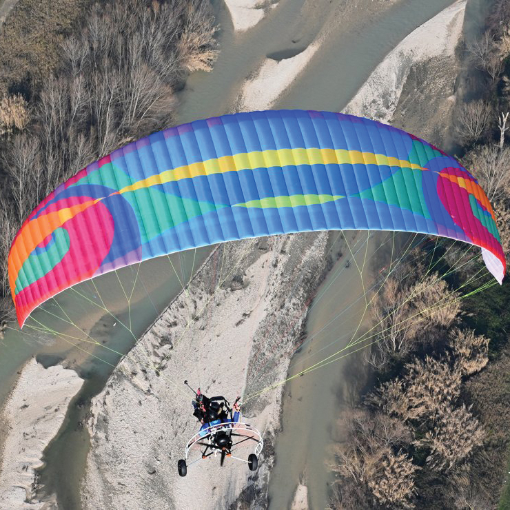 The Cyclone is a semi-reflex paramotor wing made to carry heavy loads: it’s a whirlwind of strength, with a surprisingly light touch.